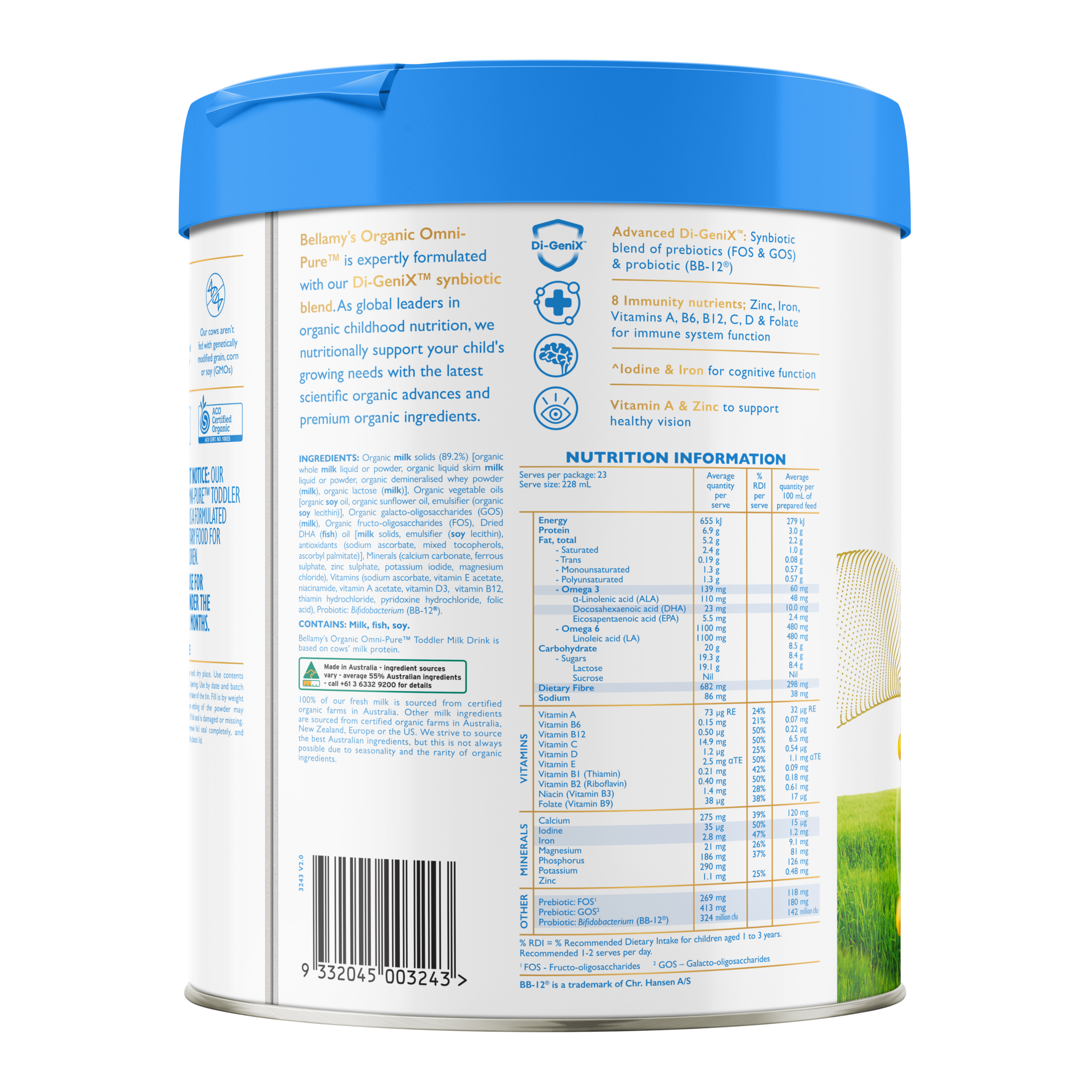 Bellamy’s Organic OMNI-PURE Step 3 is an advanced formulation which is enhanced with Di-GeniX TM, a Synbiotic blend of prebiotics (FOS & GOS) and probiotic (BB-12®).