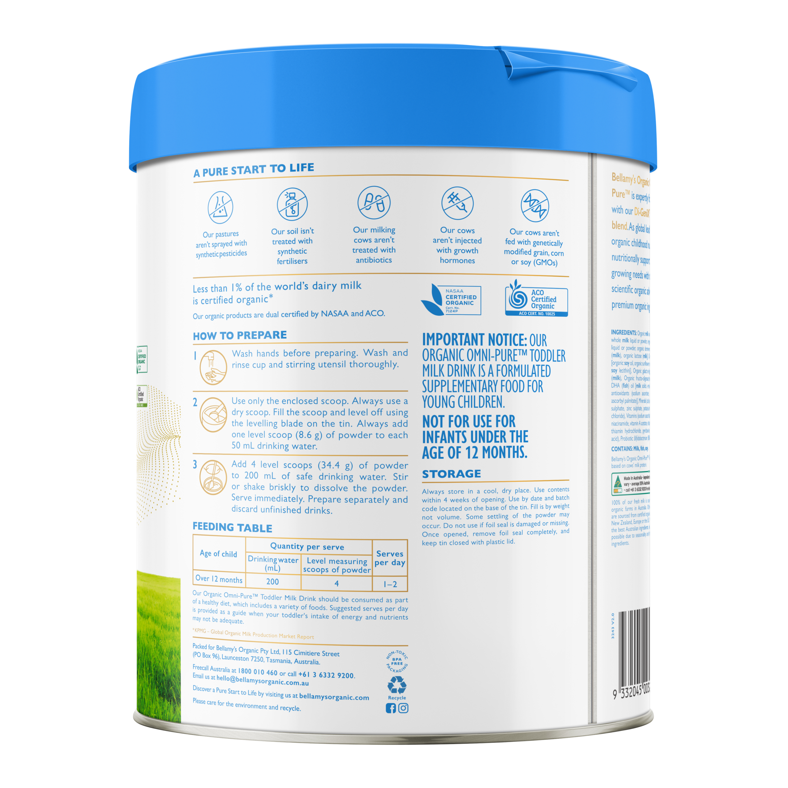 IMPORTANT NOTICE: Our organic toddler milk drink is a formulated supplementary food for young children. It is designed to compliment the dietary needs of young children who may require additional inches of energy and nutrients.
